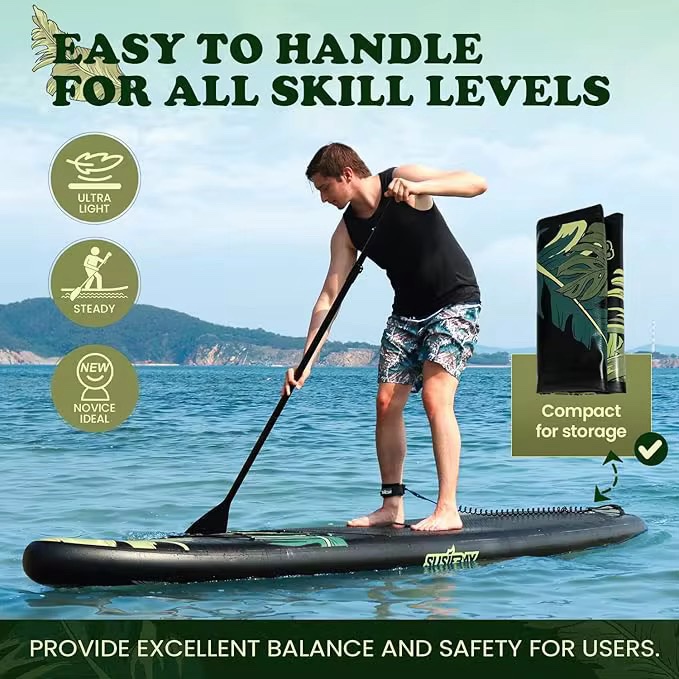La tavola da sup gonfiabile è molto stabile sull’acqua. Grazie all’uso della tecnologia fusion double layer dropstitch e alla sua lunghezza, questa tavola sup è molto stabile sull’acqua.